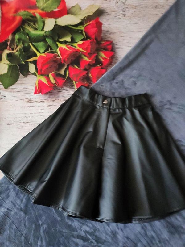 В наявності! Стильні спідниця-шорти Пояс по спинці на резиночці. Тканина еко-шкіра. Колір - чорний. Заміри: 140 довжина - 33см, пояс - 29см. 146 довжина - 35см, пояс - 30см. 152 довжина - 37см, пояс - 31см. 158 довжина - 39см, пояс - 32см. 164 довжина - 41см, пояс - 32см. Розміри в наявності: 140-2шт 146-1шт 152-2шт 158-1шт 164-2шт Арт мод
