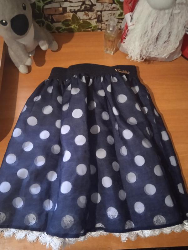 спідниця в білий горошок по верху з фатином. На дівчинку 9 років.