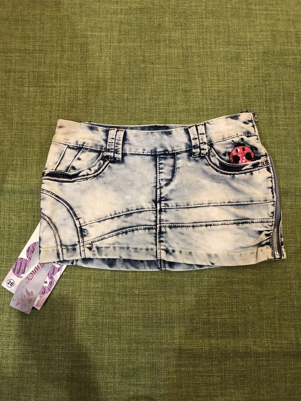 Міні-спідниця на дівчинку підлітка В наявності 2 шт різного розміру Декорована вишивкою з пайєтками; з одного боку розʼємна змійка Заміри: довжина 26/26 см; обхват пояса 75/79 см; півобхват стегон 41/43 см Тканина: джинс Колір: як на фото