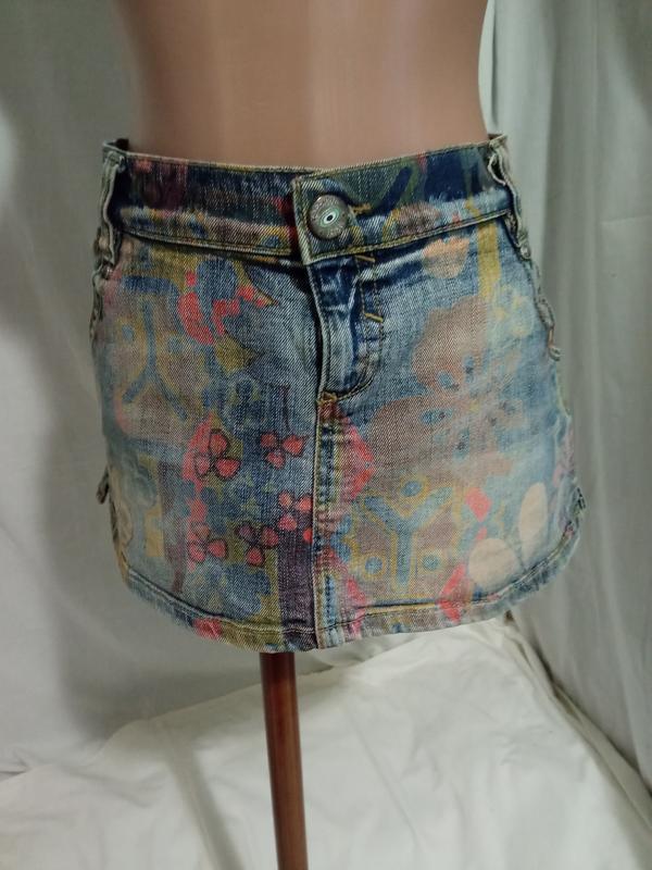 Красива молодіжна джинсова мініспідниця. Примерно на 42-44 размер или на 14-16 лет. НОТ 42 см, НОС 48 см, довжина 28 см. Накладене платтям не відправляю