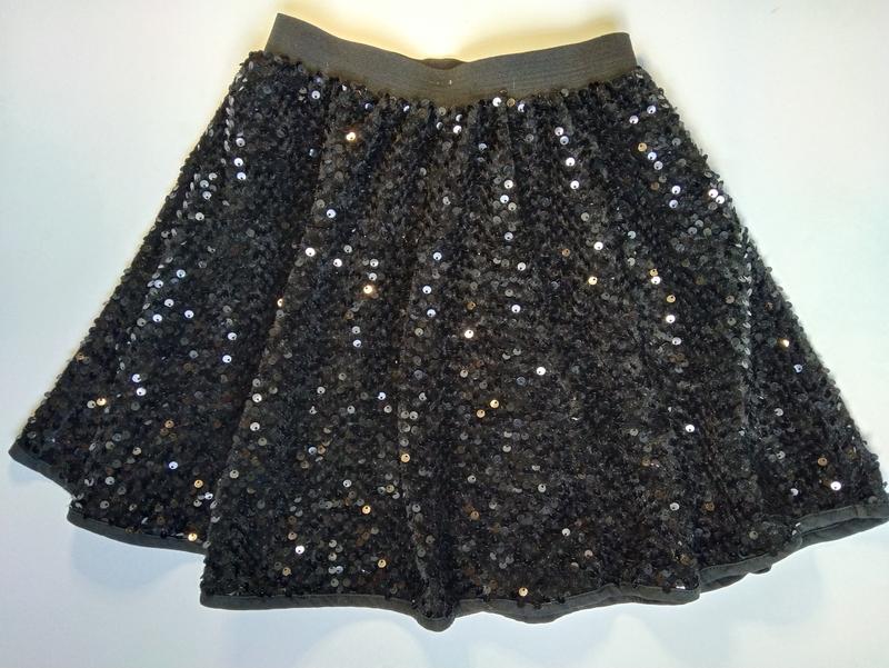 Спідниця універсальна, підійде і в школу, і на вихід. Дуже приємна м'яка тканина, с ворсом та пайетками. Є підклад. Довжина 33 см без поясу. Резинка без розтягування 25.5 полуобхват.тягнется до 35 спокійно, можна більше, але не треба. Стан ідеальний.