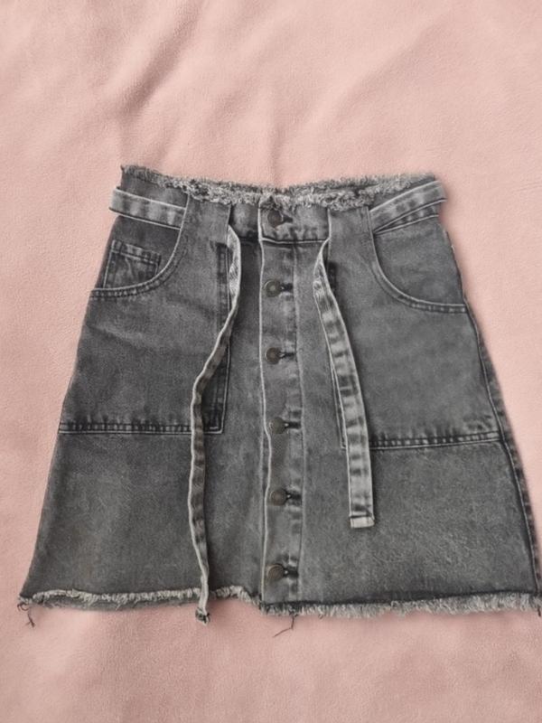 Джинсова спідниця, має пояс, який можна зняти, 9-10 років, без дефектів. довжина 42 см.
