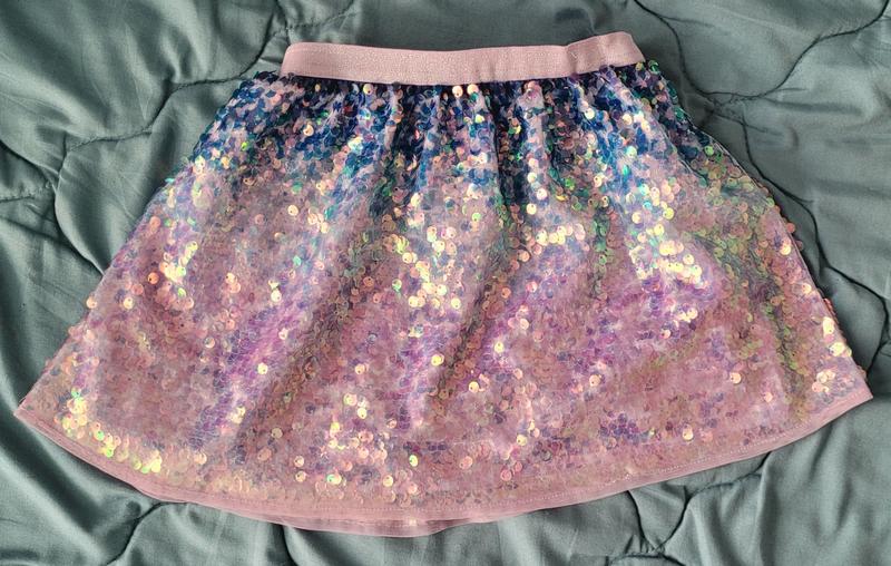 Дуже красива спідниця в пайетках для дівчинки H&M. Така спідниця підійде як святковий наряд і в літку - з топом або блузою чи футболкою, так і в холодну пору року - з світшотом або регланом. На підкладці. В ідеальному стані. Розмір 3-4 роки. В ідеальному стані. 290 грн.