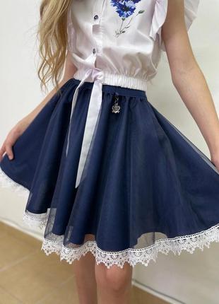 Пышная юбочка из костюмки и фатина украшена кружевом в поясе резинка ГАРНАЯ КАЧЕСТВО! рост/длин.подушечки/пот похибка+-2см 116/33/25см 122/35/26см 128/38/26см 134/40/26см 140/42/27см