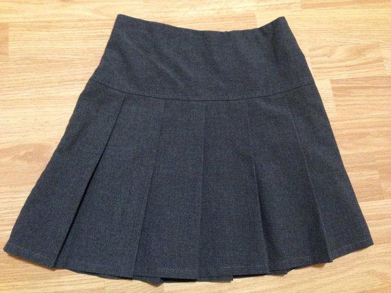 Дуже красива,яскрава,красива,класична спідничка на всі випадки життя!Без неї просто не обійтися!Виробник Бангладеш,склад 65%поліестер+35%віскоза(дуже м'яка і приємна на дотик),на етикетці зазначено 8-9 років,зріст 134,реальні заміри: довжина по боковому шву 38см, пояс-гумка 30-37см, бедра .(над складками) 38см. Колір сірий,без інших відтінків.Стан абсолютно нової речі!