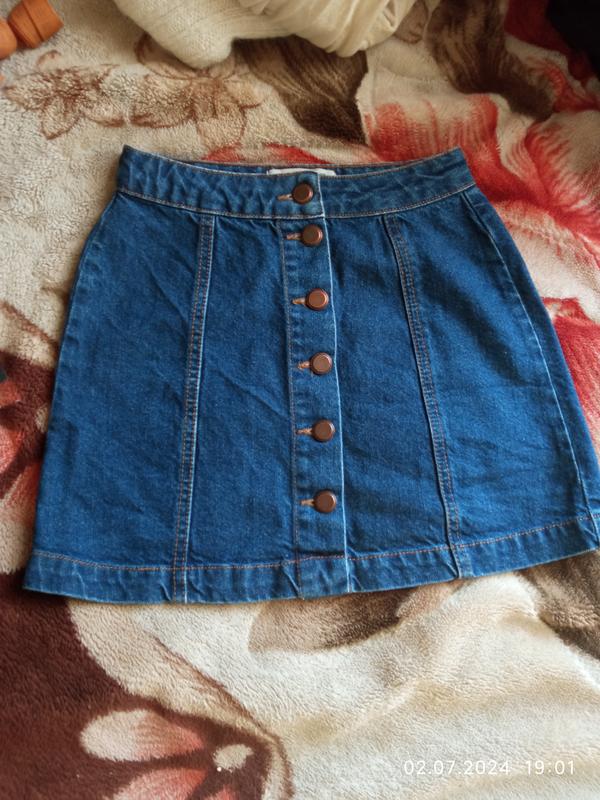 джинсова, темно синя,з переді на гудзиках, напівобхват талії -30см, напівобхват стегон -40см, довжина від пояса -32см,країна виробник Туреччина.