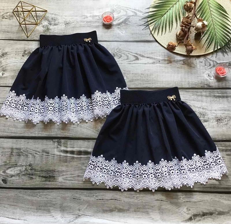 В наличии! Юбка для школы с красивым кружевом Украшение на поясе в комплекте (может отличаться. Тканина - костюмна. Цвет - черный и темно-синий. Замеры: длина вместе с кружевом. 116 длина - 37см, пояс - 24см. 122 длина - 38см, пояс - 24см. 128 длина - 40см, пояс - 25см. 134 длина - 42см, пояс - 26см.