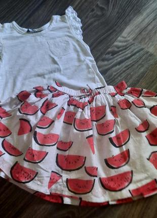 Літній комплект на дівчинку 4-5 років у вигляді спіднички Next ( 3-4 роки - великомірить) та футболочки George (5-6 років) в ідеальному стані. Переглядайте інші речі для дівчинки на сторінці по чудовій ціні та в ідеальному стані.