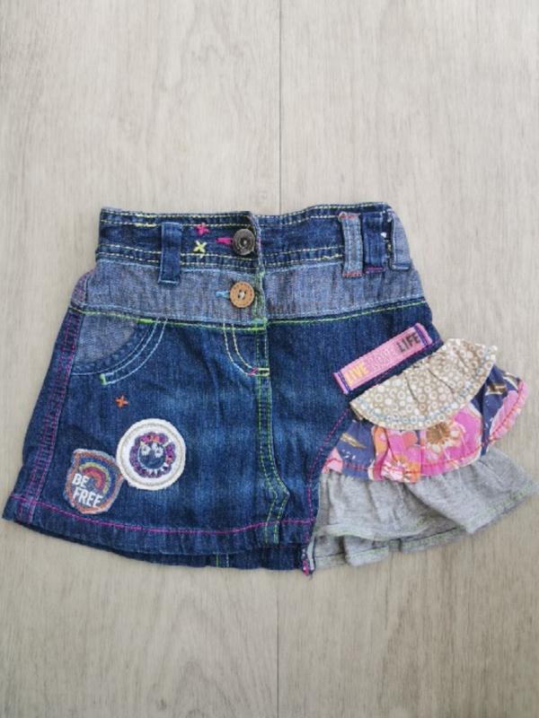 Джинс не плотный, на поясе есть утяжка под размер. Привет. Ваша малышка будет стильной и модной в этой юбке.