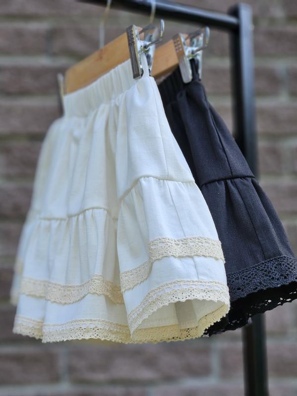 Стильна літня спідничка з натуральної тканини. М'яка, легка та дуже комфортна у носінні. Модель на резинці, підходить для щоденних образів та святкових виходів. Нижній край прикрашений делікатним мереживом, що додає ніжності та акценту в образі.