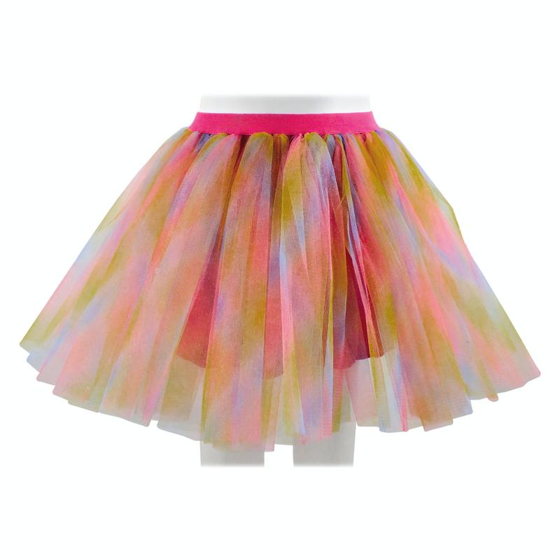 Повітряна різнобарвна дитяча спідниця з фатину з підспідничником на еластичній гумці. Вік — 6-12 років. Довжина спідниці — 35 см. Напівобхват талії — 27 см (розтягується). Ширина гумки — 2,5 см, довжина підспідничника — 30 см.
