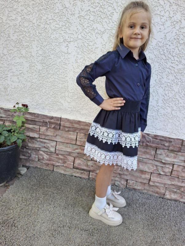 Спідниця мод 231 Тканина мадона Колір : Синій з білим мереживом , Синій з синім мереживом. 116 122 128 134 140 146 Ціна 499 грн