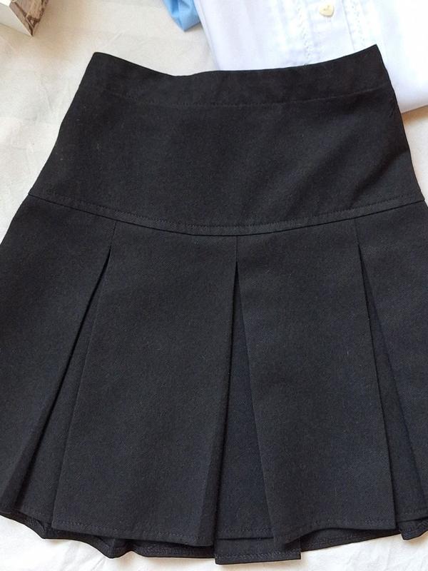 Практична шкільна спідниця від Next зі складками. Застібка збоку блискавка і гудзик усередині. Є регулювання по поясу – резинка. Заміри: Довжина-37,5 см Талія регулюється