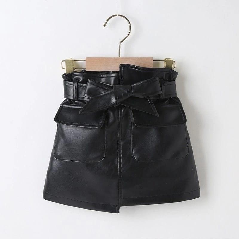 Якісна та стильна спідничка з екошкіри❤ Всередині на текстильній підкладці Пояс знімається Є 2 кармани Дуже стильно виглядає 🤩 100р- довжина 29см, бедра 29см (1 шт)