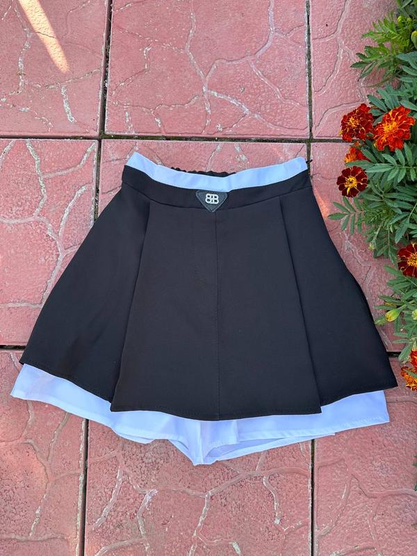 Новинка❤ Шорти-спідниця тканина костюмка шорти кльошні,тканина софт. по спинці на резинці, застібається збоку на блискавку колір чорний 134-довжина 35,пояс 26