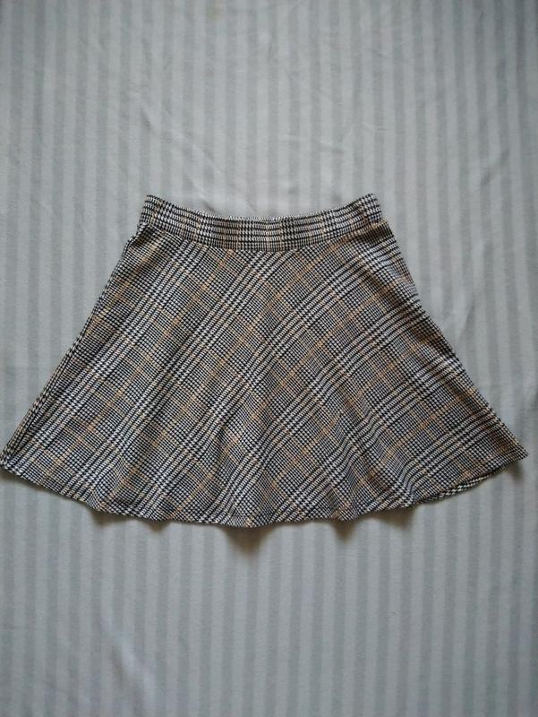 Спідниця в ідеальному стані. На вік 12-13 років. Матеріал 68% поліестр, 30% віскоза і 2 еластан. Висота 40 см. Півобсяг пояса 31 см і тягнеться до 48 см на резинці.