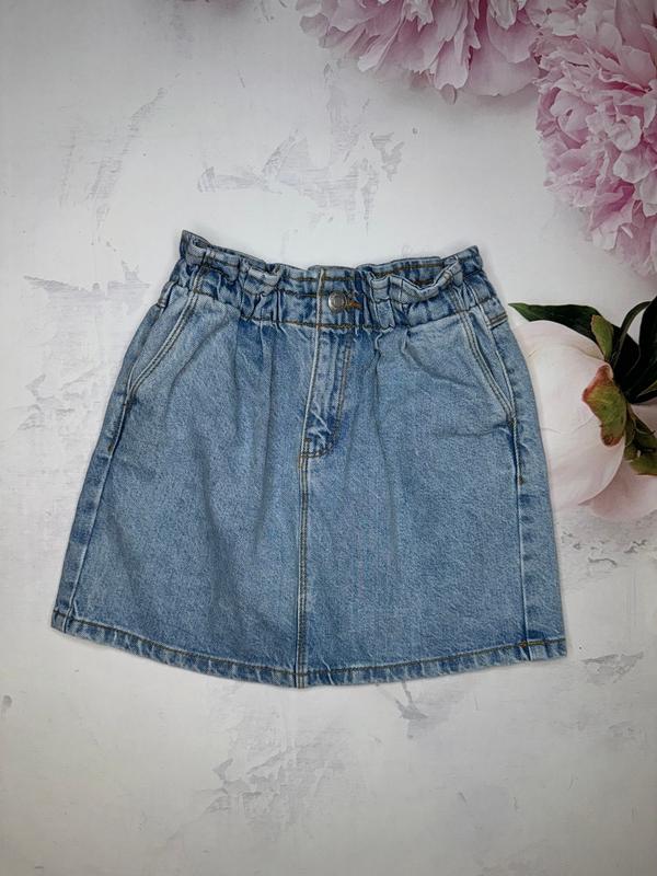 Джинсовая юбка с карманами Талия на резинке 🏷️Zara 8 лет/128 Длина 33. ПОТ 27+
