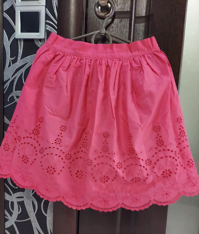 Юбка хлопковая цвета фуксии из прошвы happy kids от Tchibo. На бирке указан рост 134-140 см, но можно и раньше, подойдет на 7-10 лет. Юбка на подкладе из тонкого хлопка.