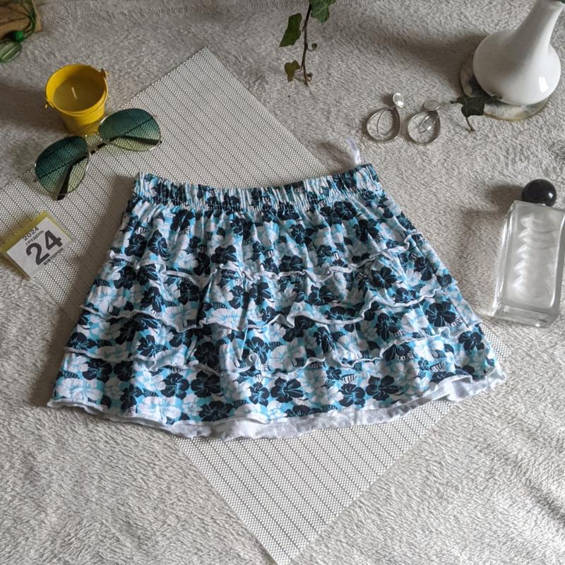 Спідниця біло-блакитно-синя в поясі 25-40, на 122 128 см бавовна