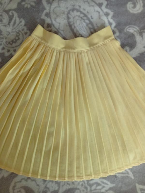 плісерована спідниця на дівчинку, пояс на резинці, дуже гарного лимонного кольору з трикотажу розміри: Обьем талії -52 см Довжина від пояса -34см. Ширина пояса -5см. Обьем талії-55см. Довжина від пояса -32см. Ширина пояса- 3см. Обьем талії -46см. Довжина від пояса- 33 см . Ширина пояса -3см. Обьем талії - 40см Довжина від пояса - 31 см Ширина пояса - 5,5 см