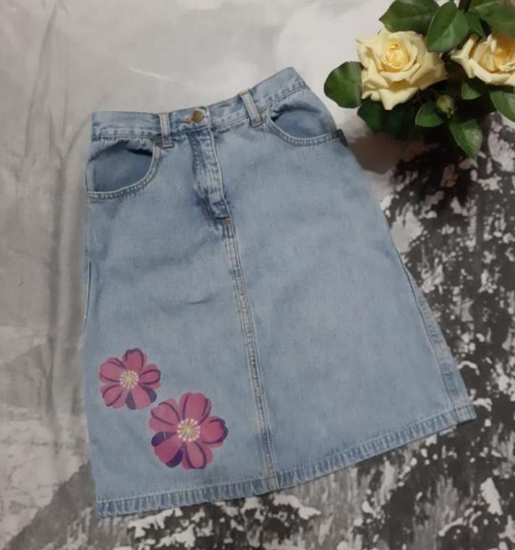 Джинсова спідничка. На талії з боків вставлена резинка. Єдиний дрібний нюанс на останньому фото.