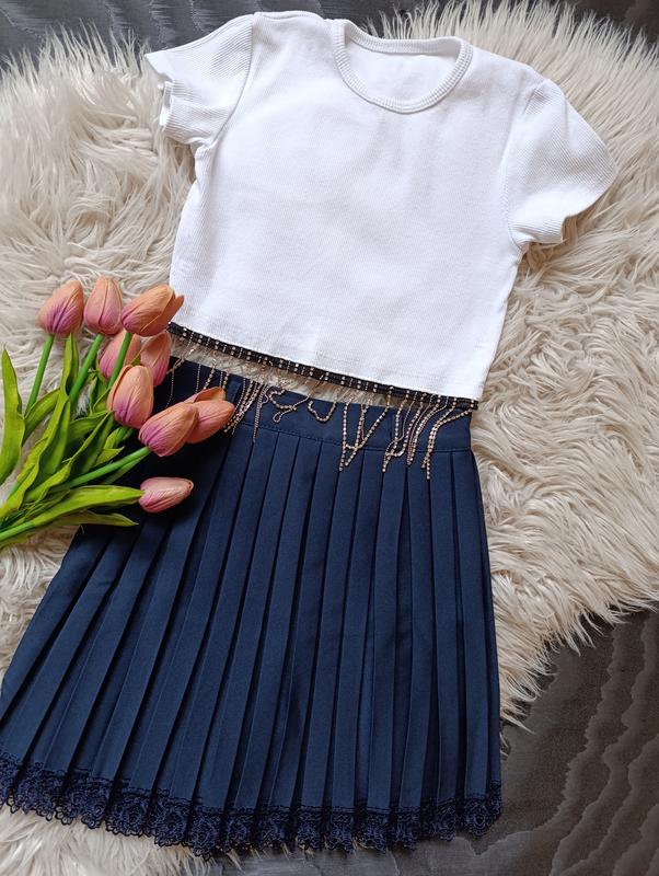 Юбка синяя, для девочки,может быть как форма, размер 122-128, но нужно ориентироваться на замеры может быть к ней укороченная футболка