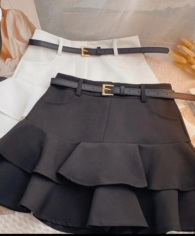 Стильная юбочка. Поясок в комплекте. Е карманы. Пояс по спинке на резинке. Пояс застегивается на пуговицу и молнию. Тканина - костюмна. Цвет - черный. Замеры: 140 длина - 33см, пояс - 28см. 146 длина - 36см, пояс - 29см. 158 длина - 45см, пояс - 31см. Мс