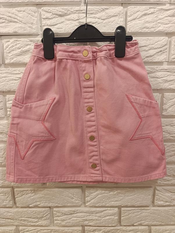 Невероятно красивая юбочка для девочки, розовая с перламутровыми пуговицами.