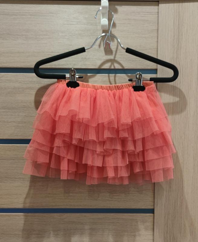 Кораловий колір спідниці буде яскраво виглядати на маленьких дівчаток. Напівобхват талії 26 см. Довжина 29 см.