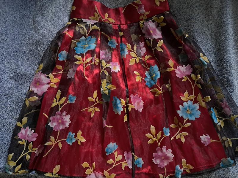 Атласна спідничка , зверху сітка з квітами Пишна Розмір ЕUR-40