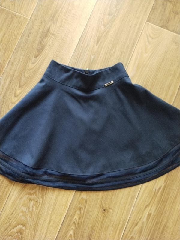 Спідниця Темно - синього кольору,пояс Без резинки,на блискавці .Більше для худенької дівчинки підійде.Стан - дуже гарний,без ньюансів.