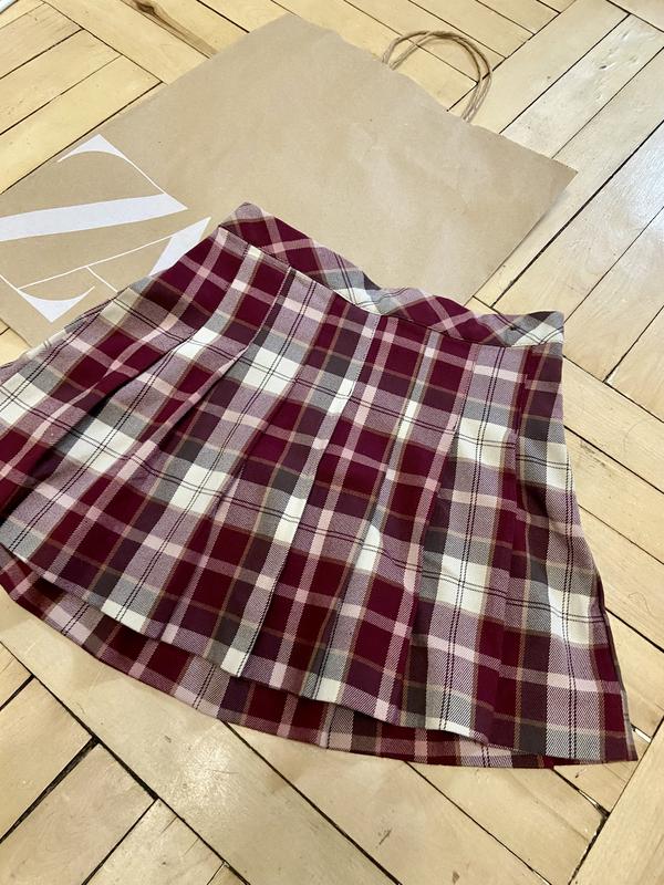 Трендова спідниця в складку.Пояс з регулюванням,по бірці 4-5р,ми одягали до 122см,більшомірить.Стан ідеальний.