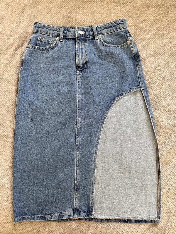 Чудова джинсова спідниця з розрізом на ніжку . Розмір М
