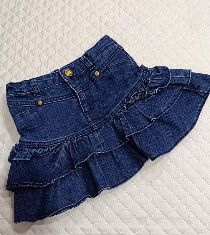 Чудова стильна джинсова спідничка, підійде на зріст 110-116 см, без кишень. На поясі є утяжки, що регулюють ширину поясу. Заміри: - ширина поясу 25 см; - довжина 26 см. Перешлю поштою!