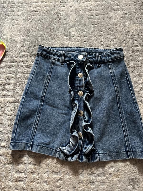 Джинсова спідниця, стильна, в ідеальному стані, одівали декілька раз! Довжина 37 см, ширина по талії 31 см, є стяжки! На 9 років, ціна 350 грн