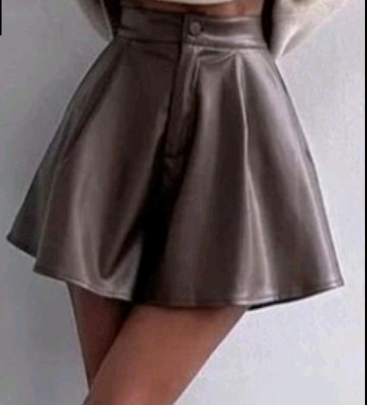 ✅️Шорти-спідниця з еко шкіри🥰 По переду мають змійку Гарна якість 🫶КОЛІР МОККО 140-1 шт 💞140-довжина шорт 35,пояс 27 ЦІНА 780