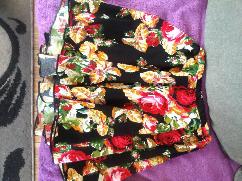 Гарна спідниця з малюнками троянд, добре підходить під вишиванки або ж просто для носіння під чорні топи або футболки, найкраще носити в теплу осінь, весну та літо, в ідеальному стані, Довжина 43см, в талії резиночка, талія 28см