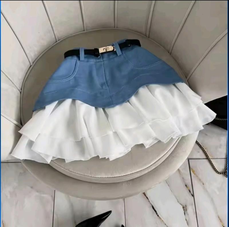 Стильная юбка высокая посадка с белыми воланами тканина стрейч-котон низ шифон+подкладка КАЧЕСТВО ЧУДОВА!! РЕКОМЕНДУЮ!!! Длина по центру/резинка 134-37/26 140-38/27 146-39/28 152-40/29 158-41/30 164-42/31