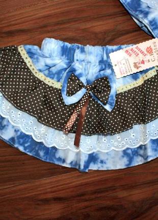 Юбка летняя с бантом горох. Размеры: р. (12) 1-2 года. - продано р. (16) 3-4 года. р. (18) 4-5 лет. Цена: 215 грн.