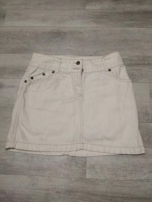 Спідниця джинсова біла. Заміри: пояс 32 см, побіди 41см, довжина 35 див.