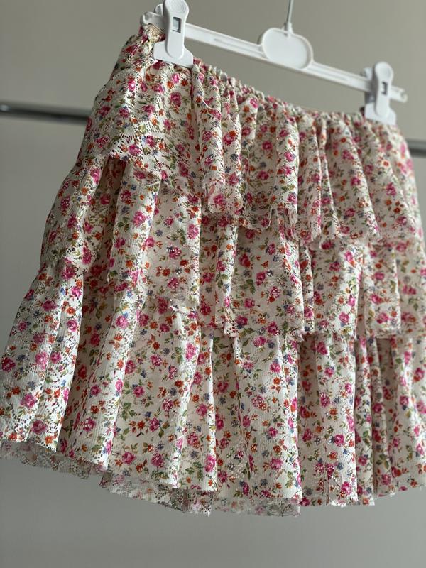 Спідниця в рюші з квітчастим принтом В поясі еластична гумка, на бавовняній підкладці