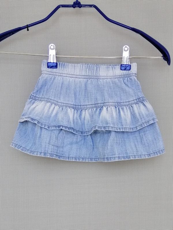 Джинсова спідниця світло-блакитного кольору з білими потертостями. Підійде з року до двох років. Відмінно виглядає з футболка і майка з інших моїх оголошень.