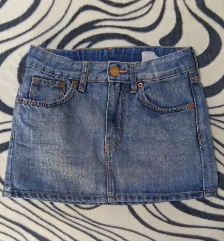 Спідниця джинсова р. 122 на 6-7років. Заміри Довжина 27 см Талія 27 см Стегна 34 см Є гумки для регулювання повноти. У відмінному стані.