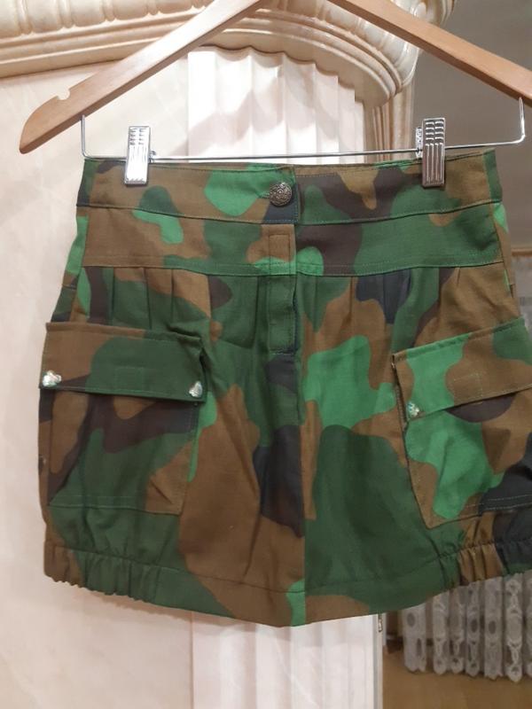 юбка в актуальный принт, натуральная ткань, сатин, длина 39, ПИТ 33, ПОБ 43, карманы на липучках, с углов отделаны стразами - сердечками