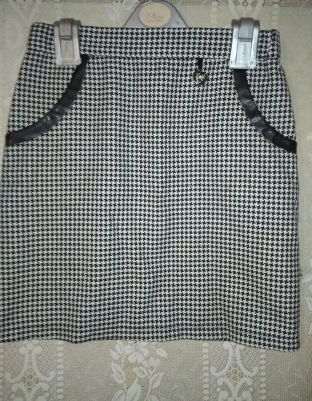 Дуже красива спідниця з модним принтом "гусяча лапка" для дівчинки на зріст 146 - 152 см, кишені декоровані ЕКО шкірою. Спідничка тепленька, виглядає шикарно!