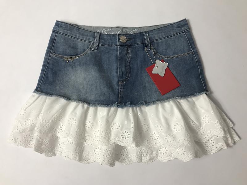 Нові. Італія Розмір 44 іт. Наш 152/158 см зріст 12 років і підійде на Пот 38.,побіди 46,5.,довжина по боковому шву 36,5 см Красива і зручна на літо спідниця 2 рюшки,верхній джинсовий шар пришитий до білого