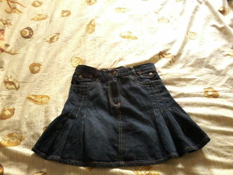 Продам джинсову спідницю на дівчинку розмір 152. Заміри: довжина 38 см, підлозі обхват по талії 33 см, підлозі обхват в районі стегон 40см. Склад: 100% Cotton