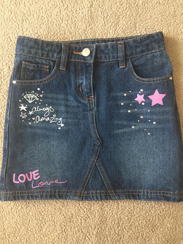 Размер и состав на фото. Джинс плотный. Украшена стразами. . Есть карманы. Дл 33, пот 30(есть утяжка), поб 37