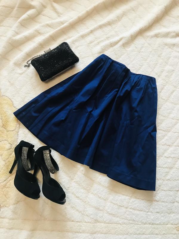 Дуже красива спідниця насичено синього кольору, з підкладкою, застібається зліва на замку. Нова з етикеткою. Можна носити на талії і на стегнах. Тканина якісна, трохи тягнеться. Розмір вказаний 38, але підійде і на 40-42, краще дивитися параметри. Ширина зверху 40 см Ширина внизу 88 см Довжина 48 см Оплата на карту Приватбанку. Доставка Новою поштою, Укрпоштою, Justin.