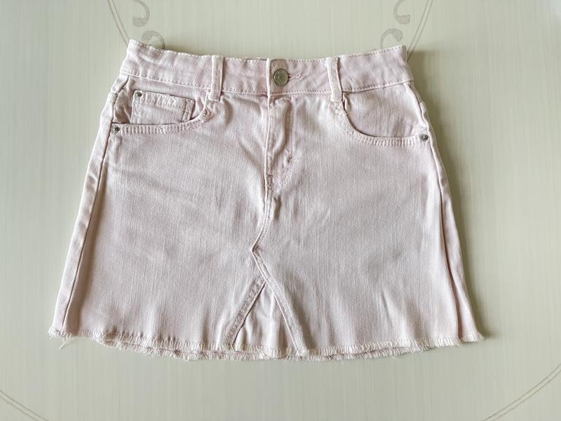 Юбка бледно-розового цвета доя девочки 9 лет, рост 134 см, длина 32 см, ПОТ 31 см, есть утяжка Состав: 98% хлопок, 2% эластан